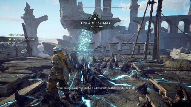 Now, as the quest says, you don’t need to return to Arif. Instead, you can begin to collect the three Enhanced Raise Shard locations in Atlas Fallen.