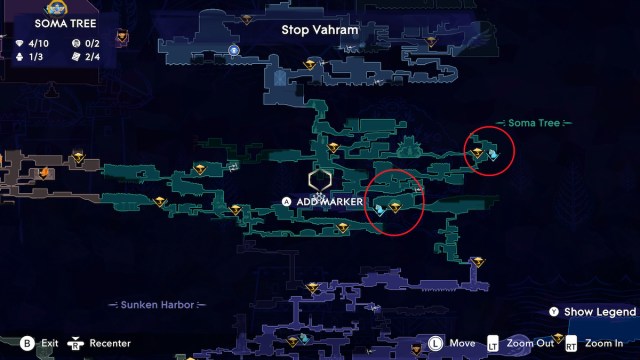 Each section has either one or two fast travel points. To unlock a fast travel point, you must attack it several times until the purple orb becomes a structure. When you do, you can interact with and fast travel to other points. Note, to fast travel, you must be at a fast travel point. You can’t do it on demand from the map. You’ll know you’re near one when your screen starts to look purple. Also, you can find them near the golden Yak-Yak trees.