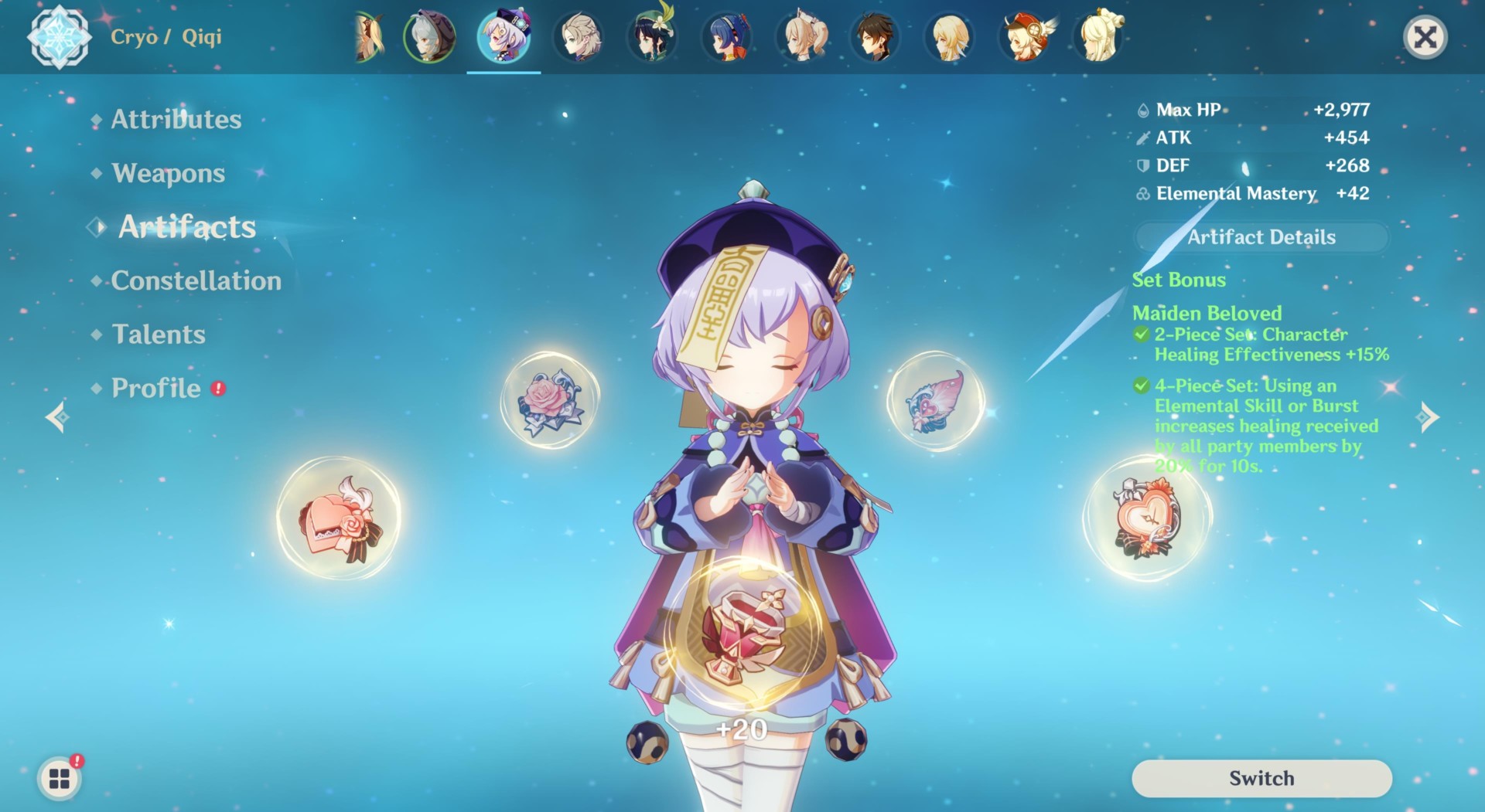 Qiqi is a 5-star character and is one of the worst 5-star characters in the game. Qiqi, unfortunately, is only known for her high healing numbers and does not provide much else, not even providing much Energy Regeneration for other Cryo characters or applying Cryo in Freeze teams. Qiqi is recommended in Physical teams where her defensive utility is appreciated, and where constant Cryo application may not be as important in other teams.