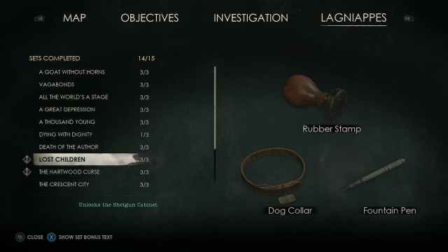 Lagniappes are collectibles you find throughout your time roaming Derceto Manor and beyond. There are a total of 45 Lagniappes, separated into 15 sets of 3. Completing sets earns you different bonuses such as more story info, an optional weapon, and even alternate endings.