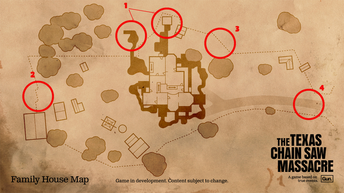 At the time of writing this guide, there are three maps in The Texas Chainsaw Massacre. The beginning of each game is roughly the same, placing victims in the basement. Then, after opening the main door leading upstairs, things change from map to map. Below, I’ll go over each exit throughout all three maps.