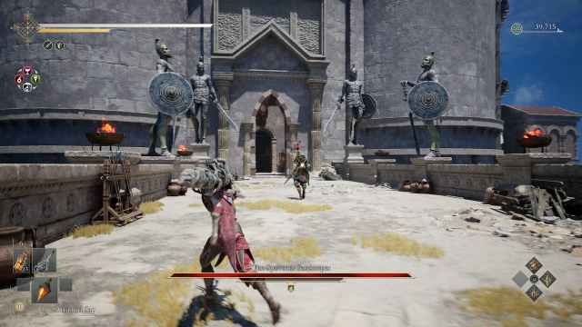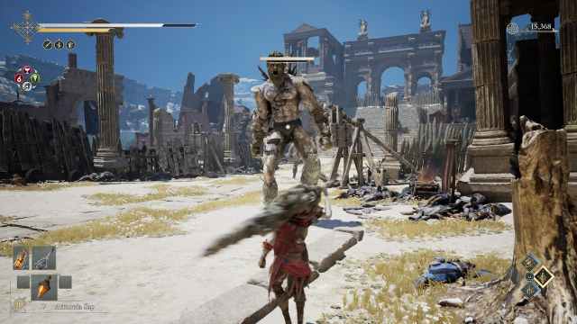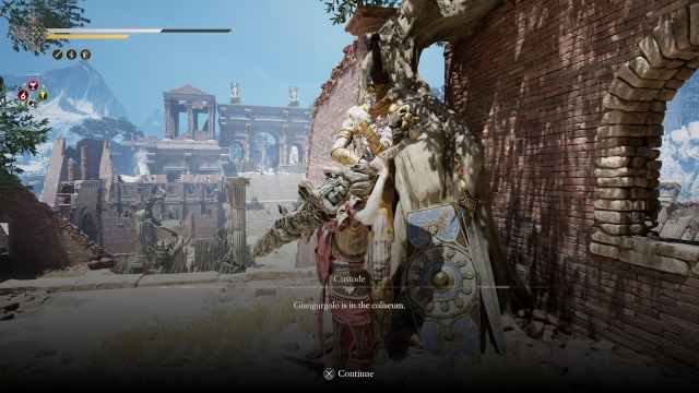 In order to get Giangurgolo’s Mask in Enotria, players must first defeat the boss of the same name. The Giangurgolo boss can be found near the Coliseum fast-travel checkpoint in the large building up the hill. Go down the stairs from the checkpoint, then take a left, and then continue straight to find his location.