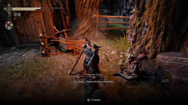 Fauno’s Mask can be obtained by speaking to Forgotten Fauno, who can be found near a shed and campfire at the ground level of Litumnia. The closest fast-travel checkpoint to his location is Old Docks and he is located past the Crab mini-boss.