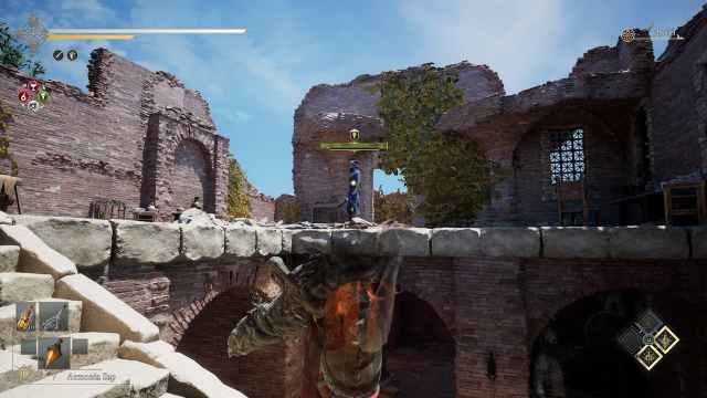 The last location players can find Custode is right next to the Coliseum fast travel checkpoint. Speak to him at this location and he will explain to you that Giangurgolo is in the Coliseum up the hill.