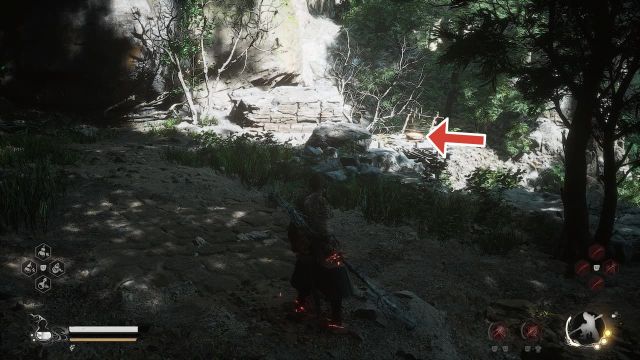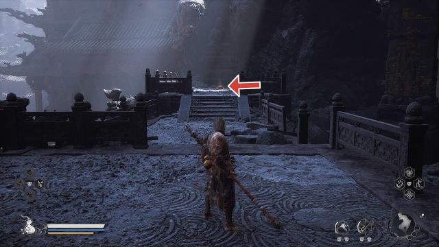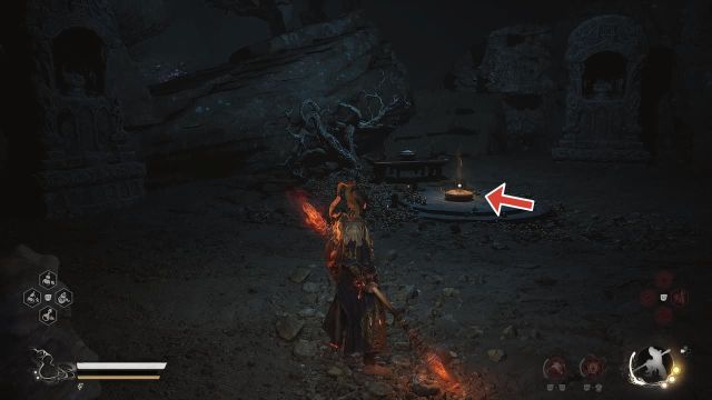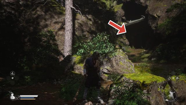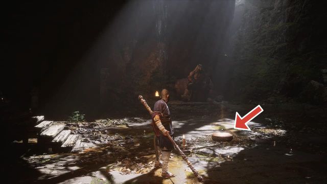 The next Meditation Spot can be found after defeating Lingxuzi, the giant white bear boss. After defeating the boss, you’ll reach a new area called Bamboo Grove and the first Keeper Shrine of the area called Back Hills. From the Back Hills Keeper Shrine, go all the way down the rocky steps and immediately turn left when you reach the bottom. Here you will find an opening leading into a cave, where a Meditation Spot can be found.