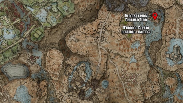 Within the Ruins of Unte is a Furnace Golem that requires lighting with a Hefty Furnace Pot before you can fight it. Throw the Pot into the Golem’s head and defeat it to earn the Bloodsucking Cracked Tear.