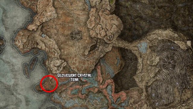 The Glovewort Crystal Tear is dropped by the Furnace Golem wandering around Charo’s Hidden Grove, North of the Cerulean Coast West Site of Grace.