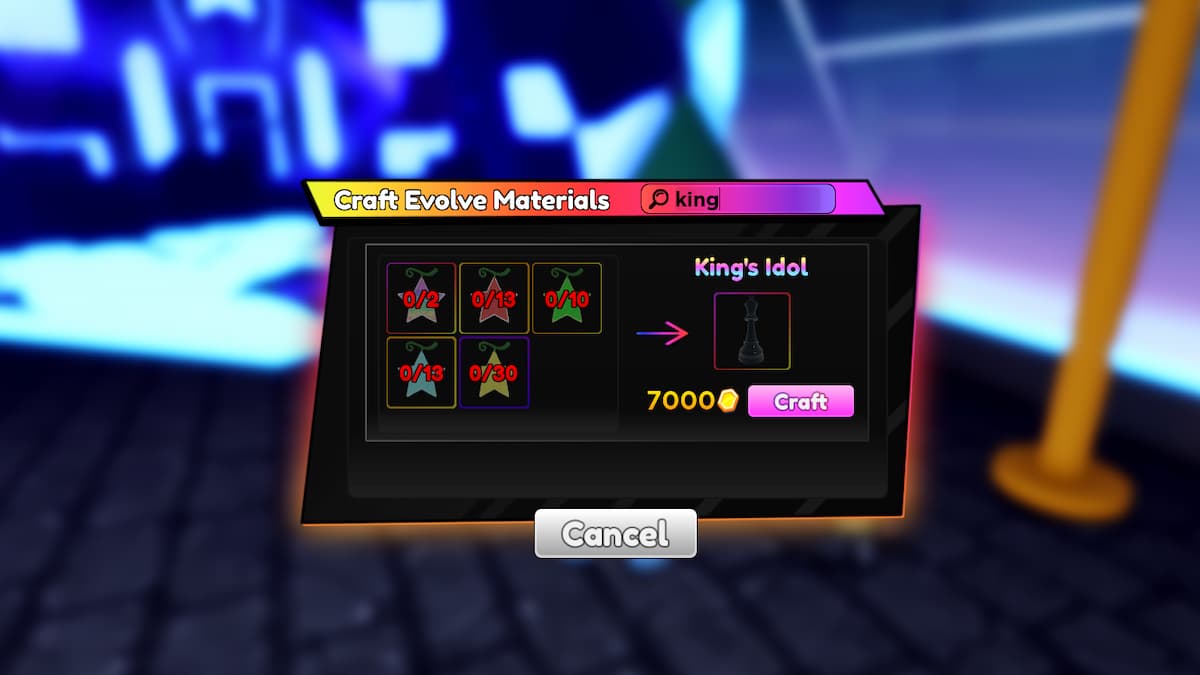 The King’s Idol can be purchased from the Travelling Merchant’s Shop for 3,000 gems, or crafted with 7,000 gold, 30 Star Fruit, 10 Green Star Fruit, 13 Red and Blue Star Fruit, and two Rainbow Star Fruit.