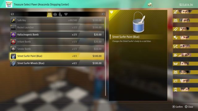 Your Street Surfer, which resembles a Segway, lets you tool around town at higher speeds than you can manage on foot. It’s a rather drab device by default, with gray and white tones dominating. You can change that by purchasing colorful wheels and paint. To find all the Street Surfer paint and wheels, look at select pawn shops, and win at several mini-games.