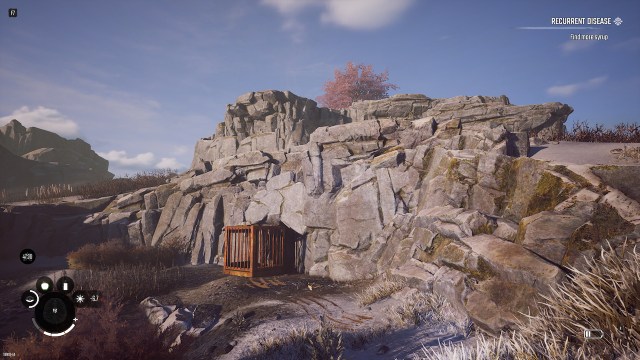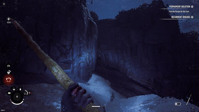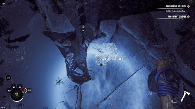 Finding the permanent cure in Winter Survival is the easiest part of your journey. Before you head out, make sure to craft an axe. Head in the direction of the marker. You will approach a large mound of rock. The cure is at the top, but to get there, you need to go inside.