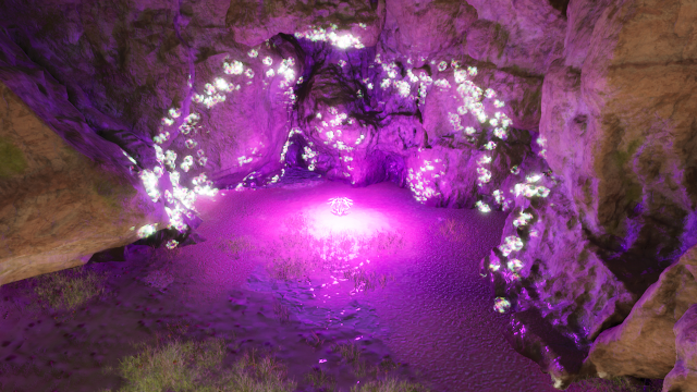 Note that the sides of this cavern are rather open-plan, so you can fly into the cavern when jumping off the cliff facing west. This Artifact also grows a brilliant purple, making it easy to identify.