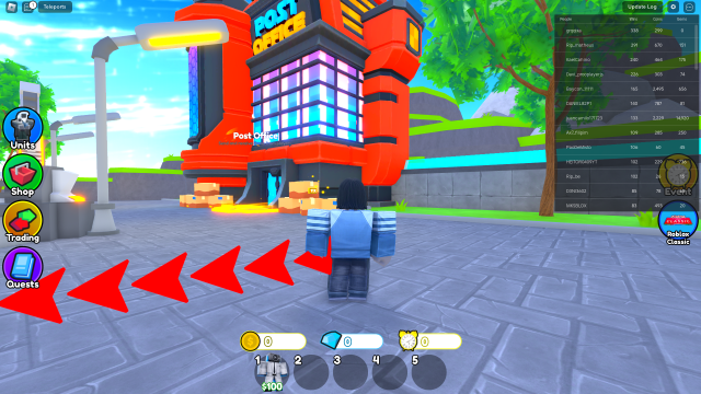 In the lobby, head towards the Post Office. On the right of the building, you will find the first Toilet Tower Defense Tix on a pile of cardboard boxes.