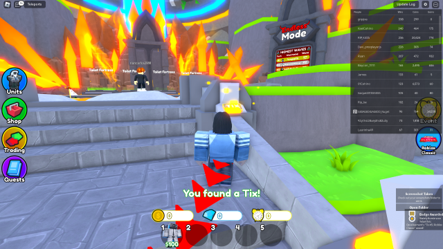 To the right of the Toilet Tower Defense Trading Plaza, you will find another Tix just underneath the leaderboard.