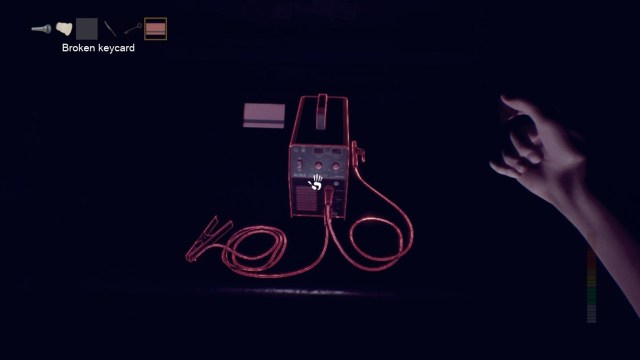Like the Programmable Card, the red Broken Card is found randomly in a box or cabinet within the Asylum. You can’t use this keycard until it’s fixed with jumper cables… for some reason.