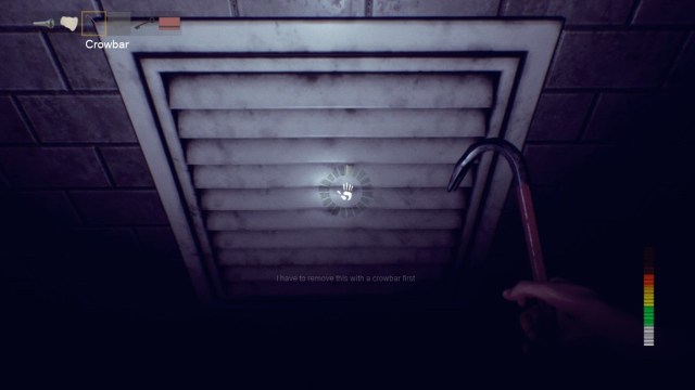 With the steam out of the way, use the crowbar on the white vent panel in the corner to pop it off. This makes a ton of noise, so ensure you’re watching your surroundings and have an escape plan ready. You don’t want to be caught seconds before you win. Enter the menacing black tunnel in front of you to escape!