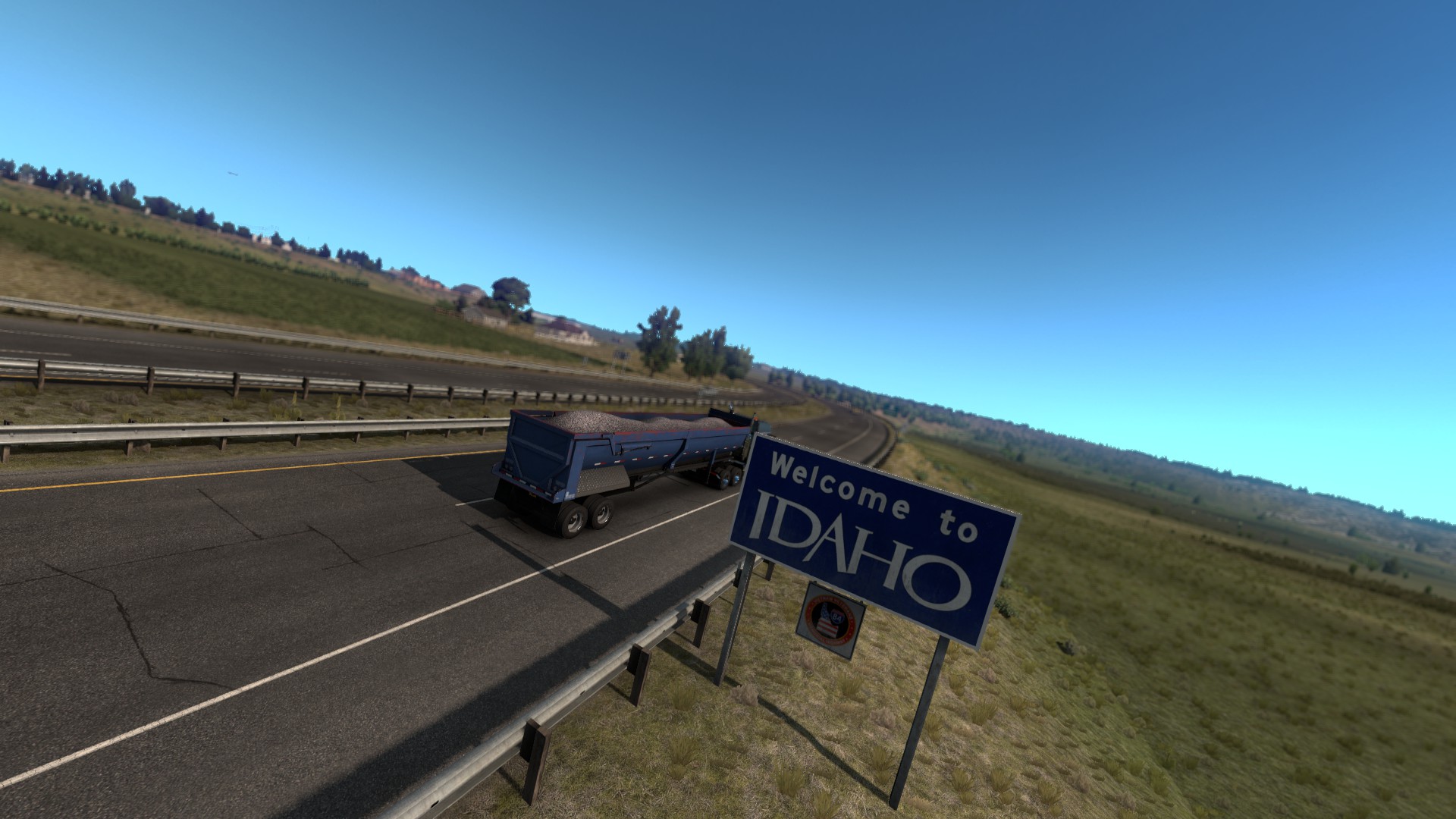 After Twin Falls got the party started, the state really began to open up as I moved northward to Idaho Falls. The “country” was on full display here, with lots of farmland and the first hints of the state’s dry, rocky elevation. Idaho Falls does live up to its name as I happen to cross a small bridge (which also overpasses Snake River) that features some smaller falls of its own. Thanks to the new FMOD functionality for American Truck Simulator, the sound environment was really pushed here as I clearly heard the roar of the falls in the distance while crossing the bridge. I’ve been near a few falls in my life, and the sound of thousands of gallons of rushing, roaring water simulated here was spot on. That said, the attention to detail throughout the state is notable. Every object in the scenery looks very deliberate (and it is as SCS tries to match real-world imagery). But, like the other DLC, driving through Idaho felt truly authentic at almost every turn. Though I’ve never been, I feel that if I ever did go, it’d be easy to spot what made it into American Truck Simulator’s rendition of the scenery.