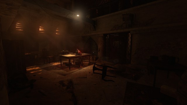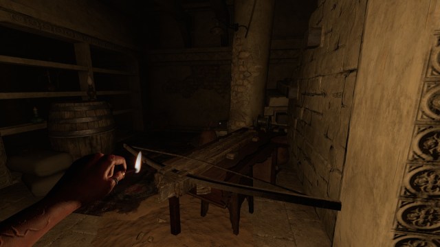 Next, enter the room at the end of the corridor to see a scene of absolute carnage. Fear will take its hold on Tasi really fast here, so make sure you can light some of the candles.