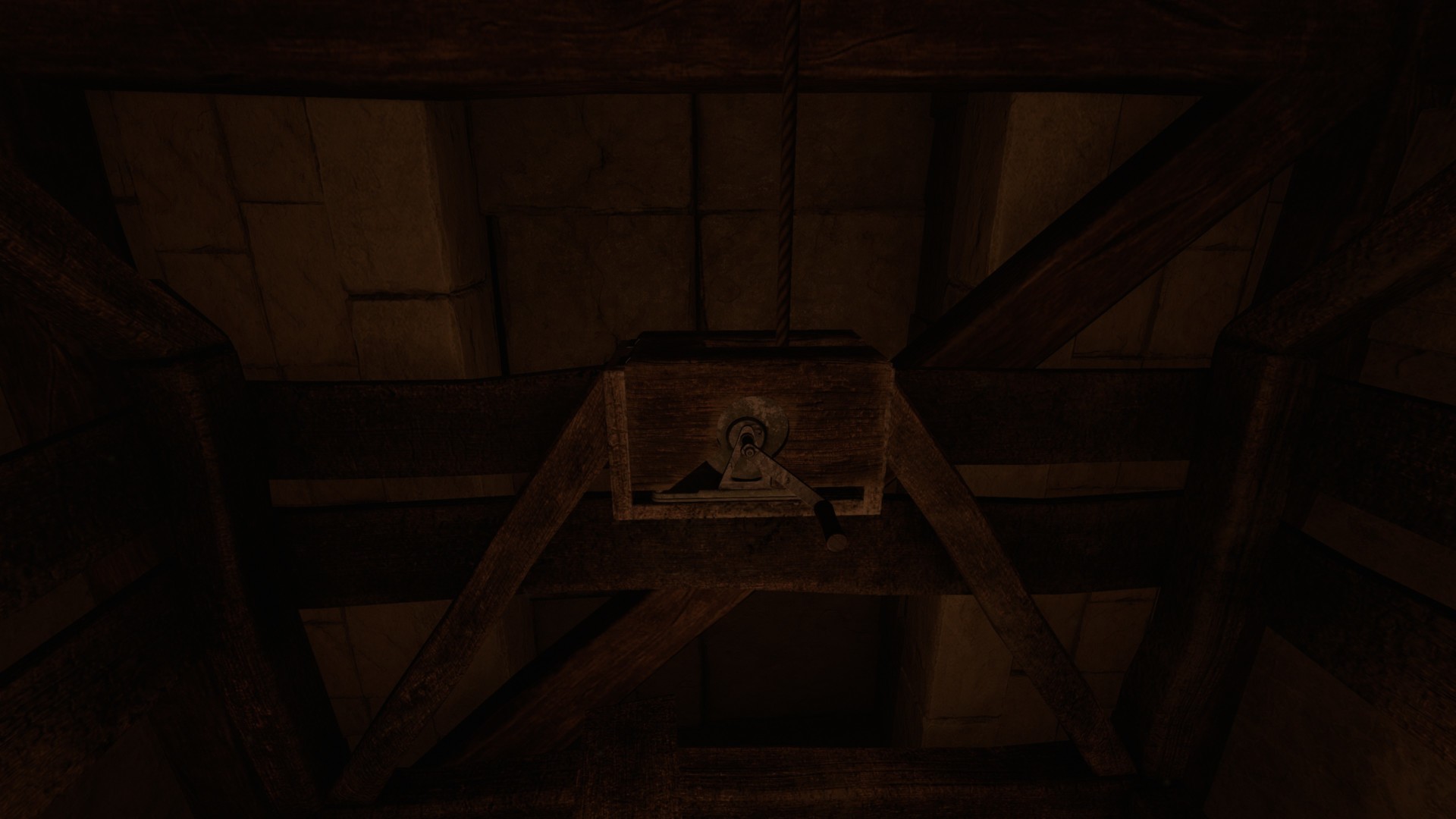 Rotate the elevator’s wheel to reach the next floor.