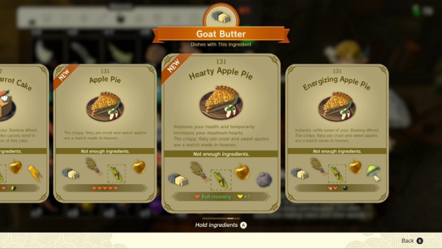 The Legend of Zelda: Tears of the Kingdom lets you make a variety of tasty treats. Given the presence of what appear to be delicious apples throughout Hyrule, you might have found yourself wondering if you can make apple pie. And it turns out you can. Here is our recipe telling you how to make apple pie in The Legend of Zelda: Tears of the Kingdom.
