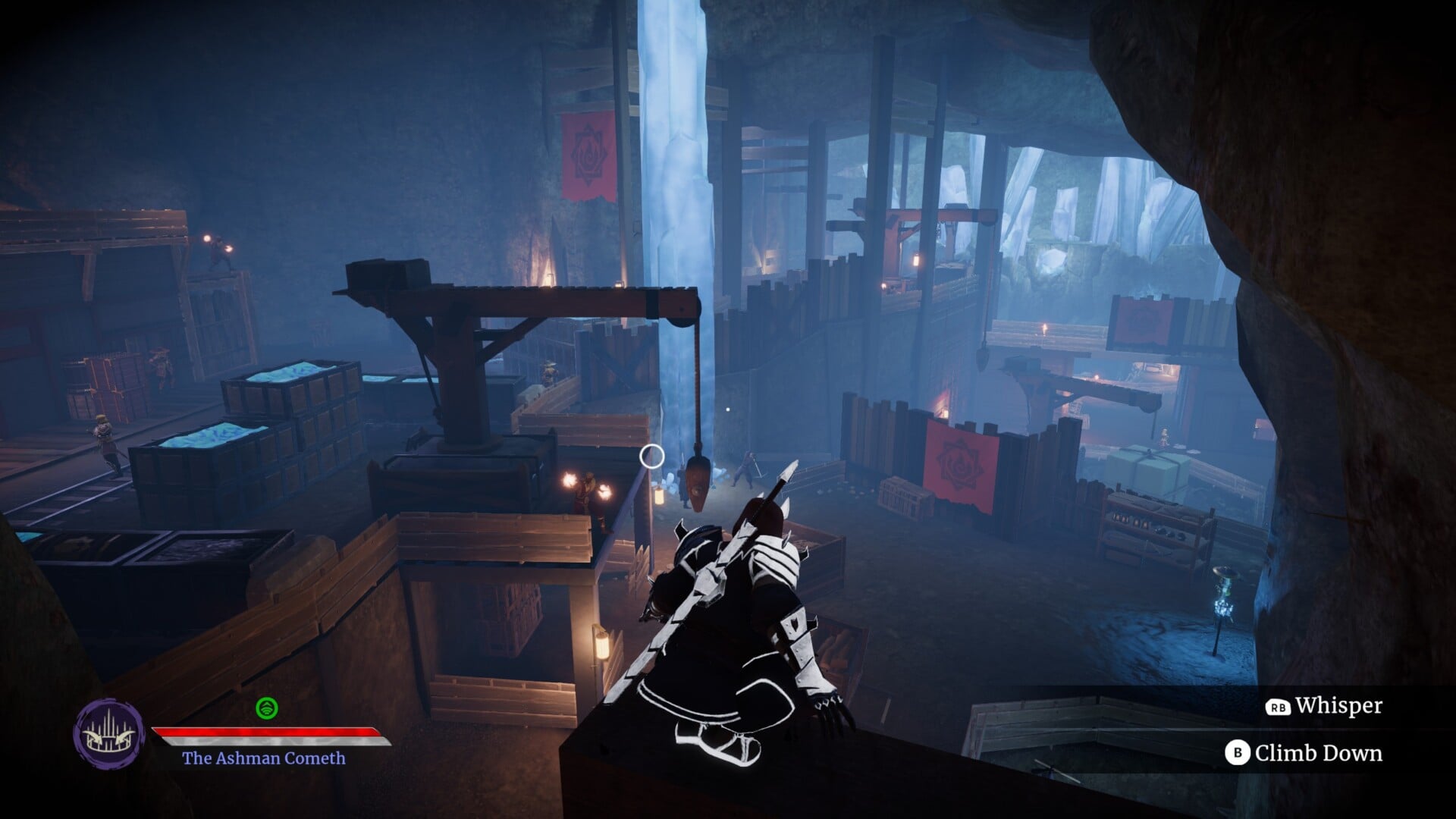 Once the level starts, you’ll want to stick to the high ground to move quickly. There’s a shrine in front of you, so land on top of that and make your way towards the front of the mine. There are archways you can teleport to above the entryway, so stick to those. The only thing to keep in mind is to watch your stamina. The best way to get a feel for this is to simply try it yourself. Just keep to the high ground and you won’t get seen.