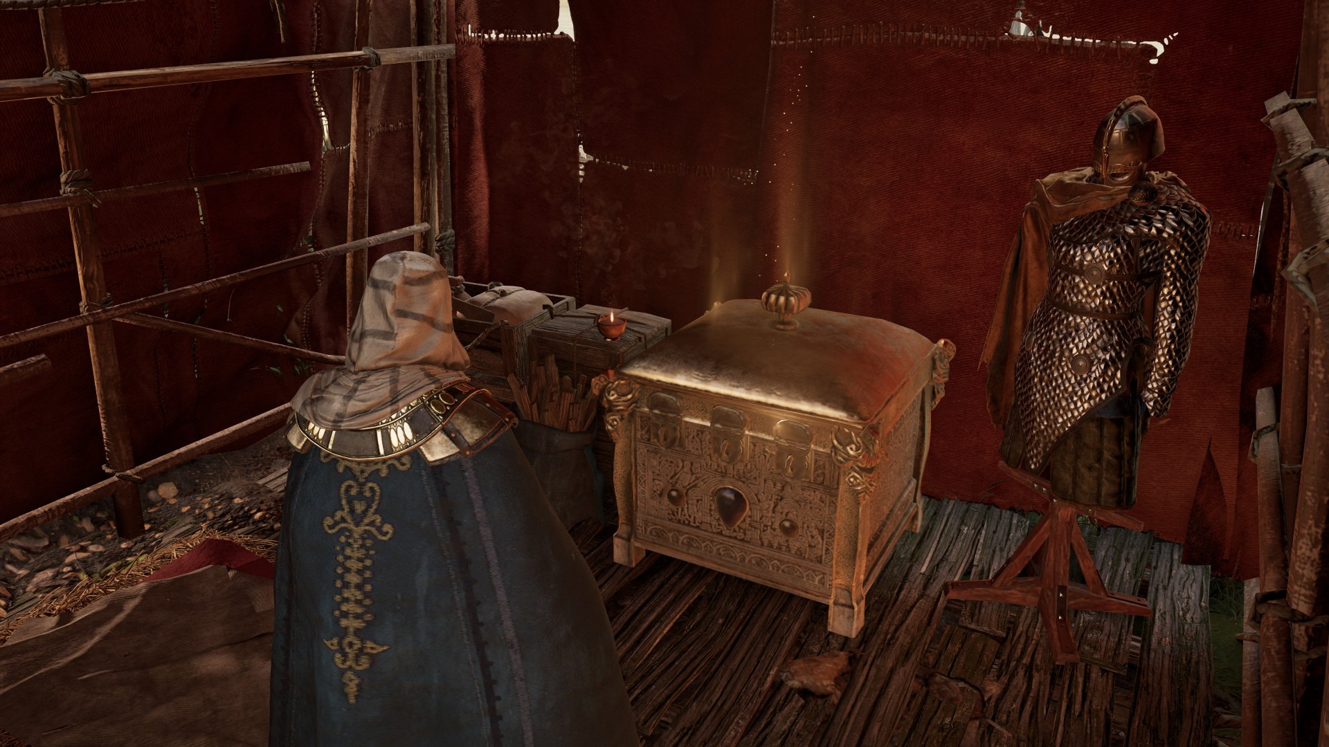 Visit Aileach in western Ulster. You’ll notice that the chest is inside a locked room. If you head to the floor above that, you’ll spot a tent. Aim at the grate to shoot the door’s lock.