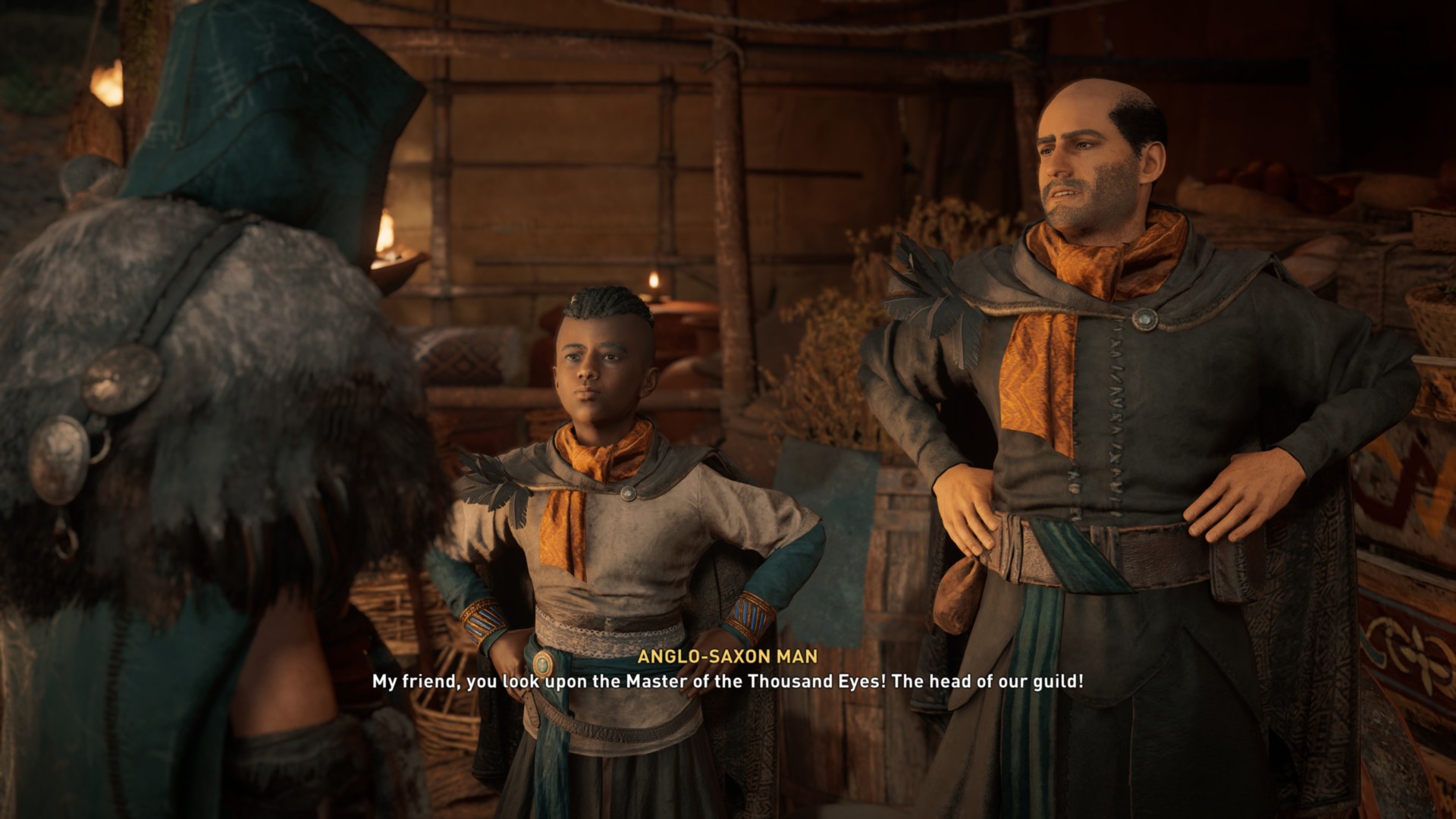 In Assassin’s Creed Valhalla, the Thousand Eyes shop is headed by Reda. As far as I know (and do correct me if I’m wrong), the Thousand Eyes shop only appears in your settlement once it reaches rank 3.