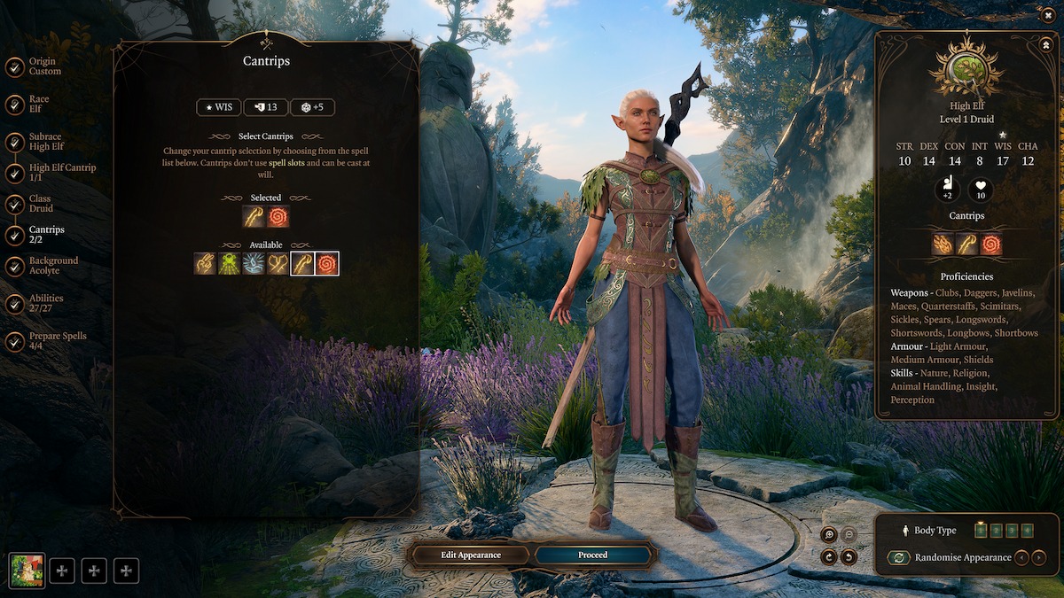 There are 13 Druid spells during Baldur’s Gate 3‘s character creation, and you can choose four: