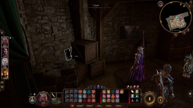 Turn your attention to the right of the desk, around the corner to the three stacked boxes. If your party succeeds in the Perception check, you’ll find a lever. And just like all good levers, pulling this one reveals a secret entrance to a further part of the cellar. As it turns out, this place isn’t just the strange basement of an alchemist.