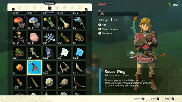 One of the coolest arrow attachments in Tears of the Kingdom is Keese Wings and Eyeballs. When wings are attached to an arrow, they fly a lot further. When an eyeball is attached to an arrow, the arrow becomes a homing missile.