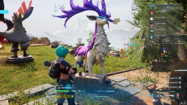 Eikthyrdeer is an incredible Pal for your base as it specializes in one thing: Lumbering. If you leave this majestic creature at your base, you’ll constantly hear the banging of wood being chopped at the Logging Site. As Eikthyrdeer is a large Pal, I recommend putting the Logging Site in an area with plenty of space so it doesn’t get stuck.