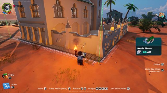 Whether you find flat ground or not, the one thing you do need to know how to do is to use the snap feature. When building, you can hold down the snap button and then place your blocks to have them match up more easily. It’s not perfect, but it is a useful tool.
