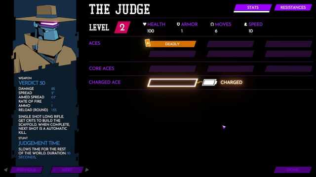What makes him one of my most used characters (at least until #2 on the list) in the game, is his Judgement Time Stunt move, which essentially freezes enemies for 10 whole seconds. I was able to easily activate my stunt, weave behind enemy shields and cover, and blast their head off with a properly placed headshot. The Judge is probably the best early-game character in all of the Wild Bastards.