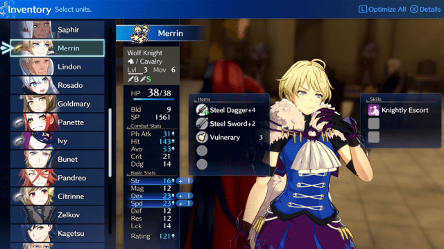 The best class for Merrin in Fire Emblem Engage is the Wolf Knight class. This is the class Merrin comes into the party as, and its higher mobility versus the thief class makes it the preferred knife class. Wolf Knight can also be classed into other proficiencies. There are options for sword, axe, and lance alongside the knife proficiency it offers. This means the class is versatile, filling a hole in your team based on your need.