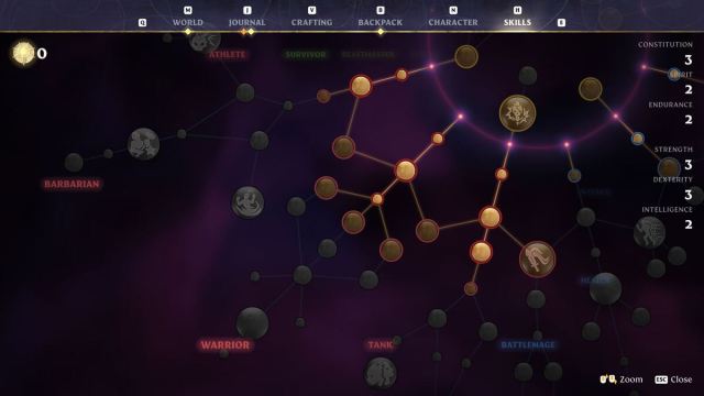 Enshrouded features three colored paths in its skill tree: red, blue, and green. Each colored path contains your stereotypical RPG tropes like warrior, rogue, and wizard, but they each branch off into four individual classes, making the total number of classes in Enshrouded 12.