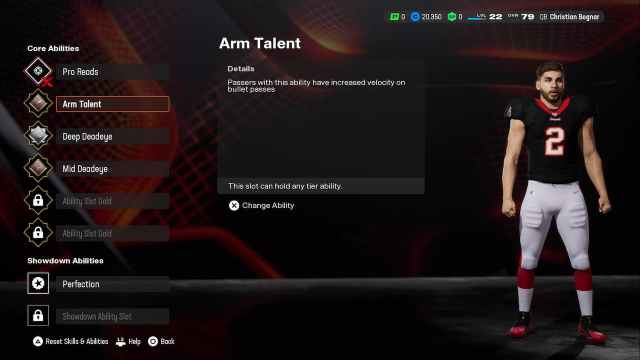 There are three different types of abilities in Superstar mode for Madden NFL 25. Core Abilities are equipped to your Superstar and specifically increase your player’s performance, Showdown Abilities are used during Showdown mode against other players, and Teammate Abilities affect specific positions on your team.