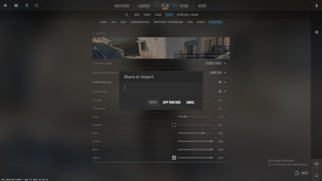 - Now, on the lower right corner of the Crosshair preview screen, you will find the option ‘Share or Import.’ Click on it.
