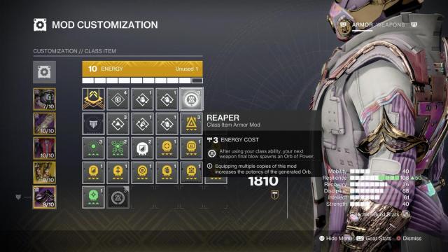 - Class Item – Resilience Mod, Recovery Mod, Reaper
