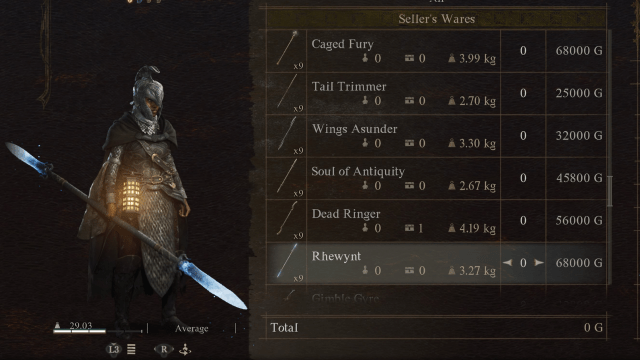 Players must wait until the endgame to get the Rhewynt Duospear. Once you reach the endgame, this powerful weapon can be purchased from Rodrick’s, Grisha’s, Celeste’s, Awaran’s, and Brokkr’s Smithys.