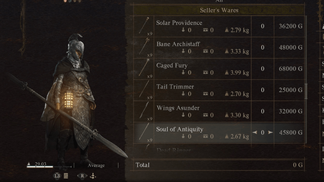 Players looking to obtain the Soul of Antiquity can purchase it from Awaran’s Arms in Bakbattahl for 45800 gold. If you are brave enough to enter Bakbattahl before getting a pass to acquire this Duospear early, go for it.