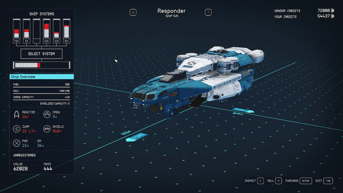 The Responder is a specialized ship. While you’ll be getting in space combat a lot, it’s not necessarily built for that. Due to its limited firepower by only having 1 particle weapon, you won’t be destroying ships with the Responder. Since the ship is equipped with non-lethal EM weapons, boarding is what you’ll be doing more of. Taking over a ship is worthwhile because you’ll be getting more rewards and emphasize the pirate lifestyle. The Responder is one of the more common ships in Starfield and can be found in any shipyard in most cities