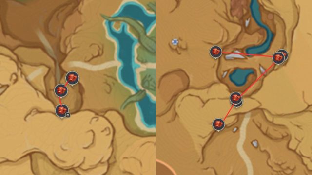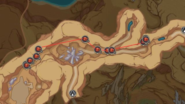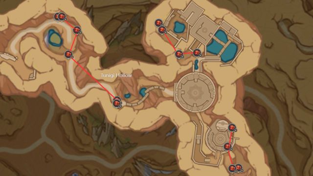 Another good farming route for Trishiraite in Genshin Impact is also underground, this time in a place called Hangeh Afrasiyab. There are 14 Trishiraite throughout these tunnels, separated in their own small clusters.