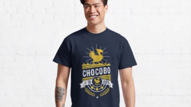 If you’re someone who’s looking for Final Fantasy clothing that is stylish but still relates to the franchise, this Classic Chocobo T-Shirt fits the bill. This shirt has an old-fashioned design with a Chocobo silhouette and the year 1988, almost resembling a cool thrifted shirt.