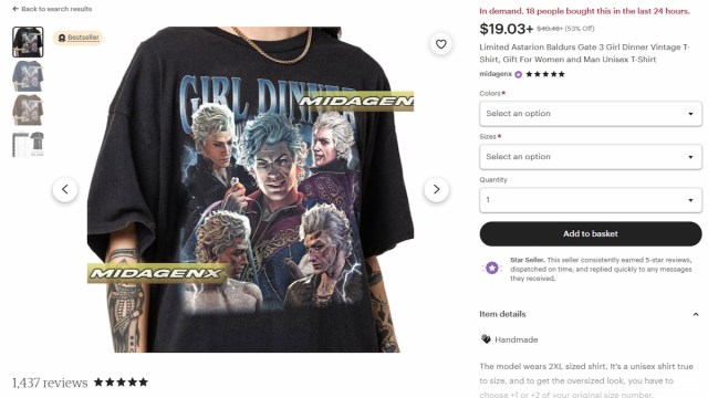 What’s even better is not only can you get one with Astarion, but if you check the link, you’ll find a few other popular companions like Gale and Halsin with the ‘girl dinner’ slogan. This is a perfect shirt for a friend that you know is obsessed with Astarion or other companions.
