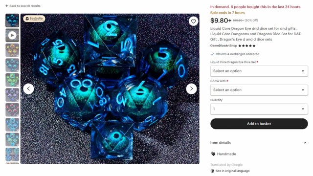This wouldn’t be a very good best Baldur’s Gate 3 gifts list without a dice set. Because what dungeon master and D&D enthusiast doesn’t love buying more dice than they can afford? This Liquid Core Dragon Eye Dice Set is a gorgeous, homemade dice set with eerie eyeballs on the inside.