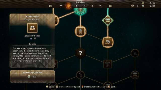 Another part of the game that we find too tedious is mining. Both the Paddle Scoop and the Tsukomo Ore Shrine are Karakuri upgrades that allow you to focus on the action of hunting down a Kemono. The Tsukomo Ore Shrine is the opposite of Paddle Scoop in the sense that you’ll place it on land instead to gather ores for you.