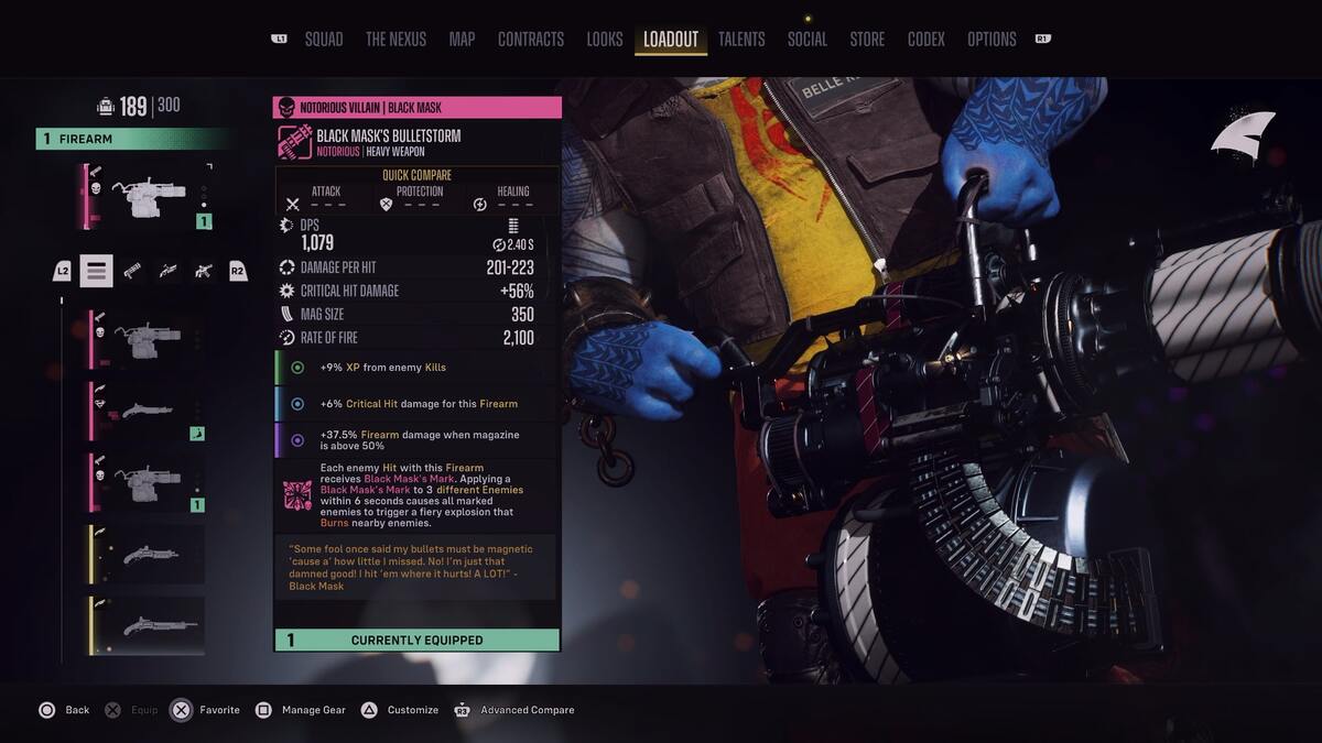- Firearm 1 – Black Mask’s Bulletstorm Heavy Weapon, One Man Leaves Heavy Weapon