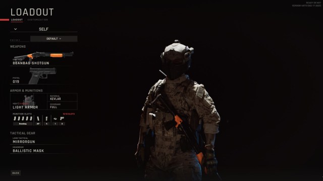 This final build is another tweak on the Light Armor builds, with a greater focus on quickly assessing and storming rooms with your team. I like to use this build with the Beanbag Shotgun as it gets quicker non-lethal potential than the Pepperball guns, but with the downside of potentially being fatal if you overdo it.