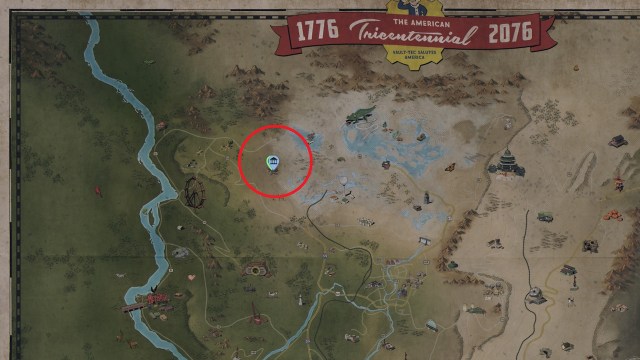 Making your way to the Forest area, west of the Flatwoods you can find this meadow. It’s worth going here due to the workshops that make food when turned on. In other words, you can come back over and over again to get Pre-War food. However, the issue with this spot is that it’s a hot zone for players to attack. If someone else has ownership of Sunshine Meadows industrial farm, you may have to fight them. If that’s not an option, then you might have to claim the farm. To do so, there will be a side quest in the area that needs to be completed to get ownership of the workshops.