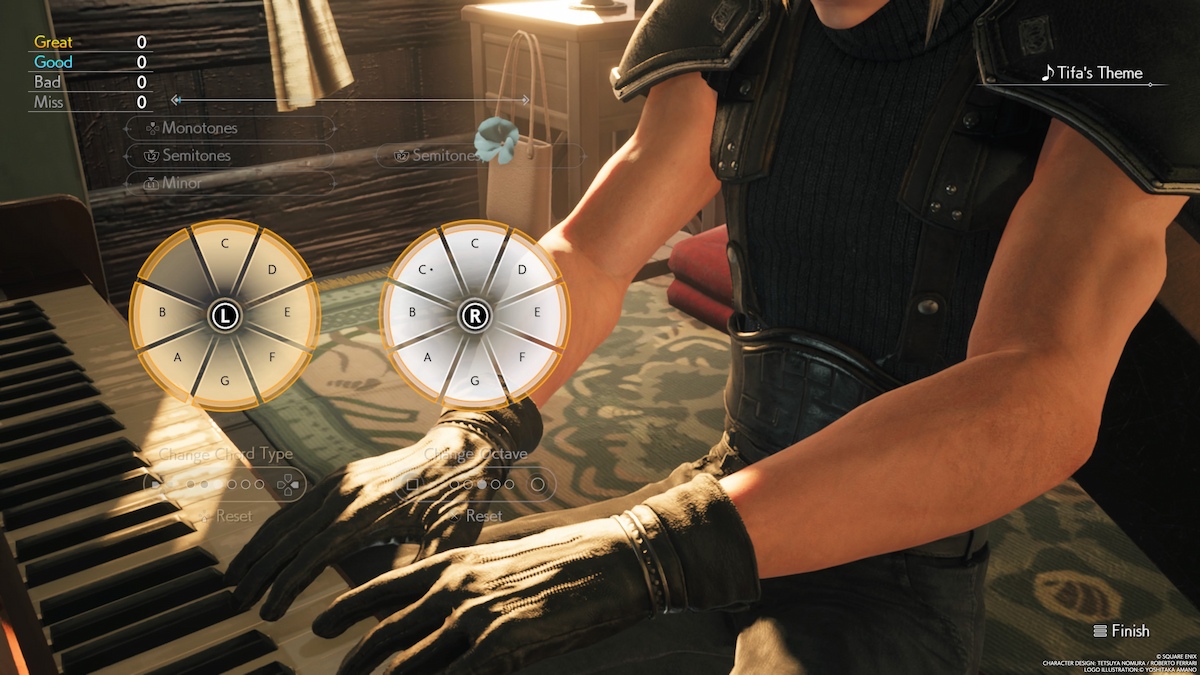 Piano is easy to learn and tough to master. As you go through the story of FF7 Rebirth, you’ll unlock new areas and find more Piano music sheets. It’s great to hear music you love from this game, let alone being able to play it yourself.