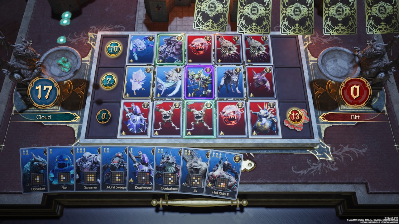 It would be a crime if I didn’t put Queen’s Blood in first place for the best minigame of FF7 Rebirth. Queen’s Blood is quite difficult to learn, but as soon as you understand it, you’re hooked for good. You’ll be rushing to stores to buy Booster Packs in no time.